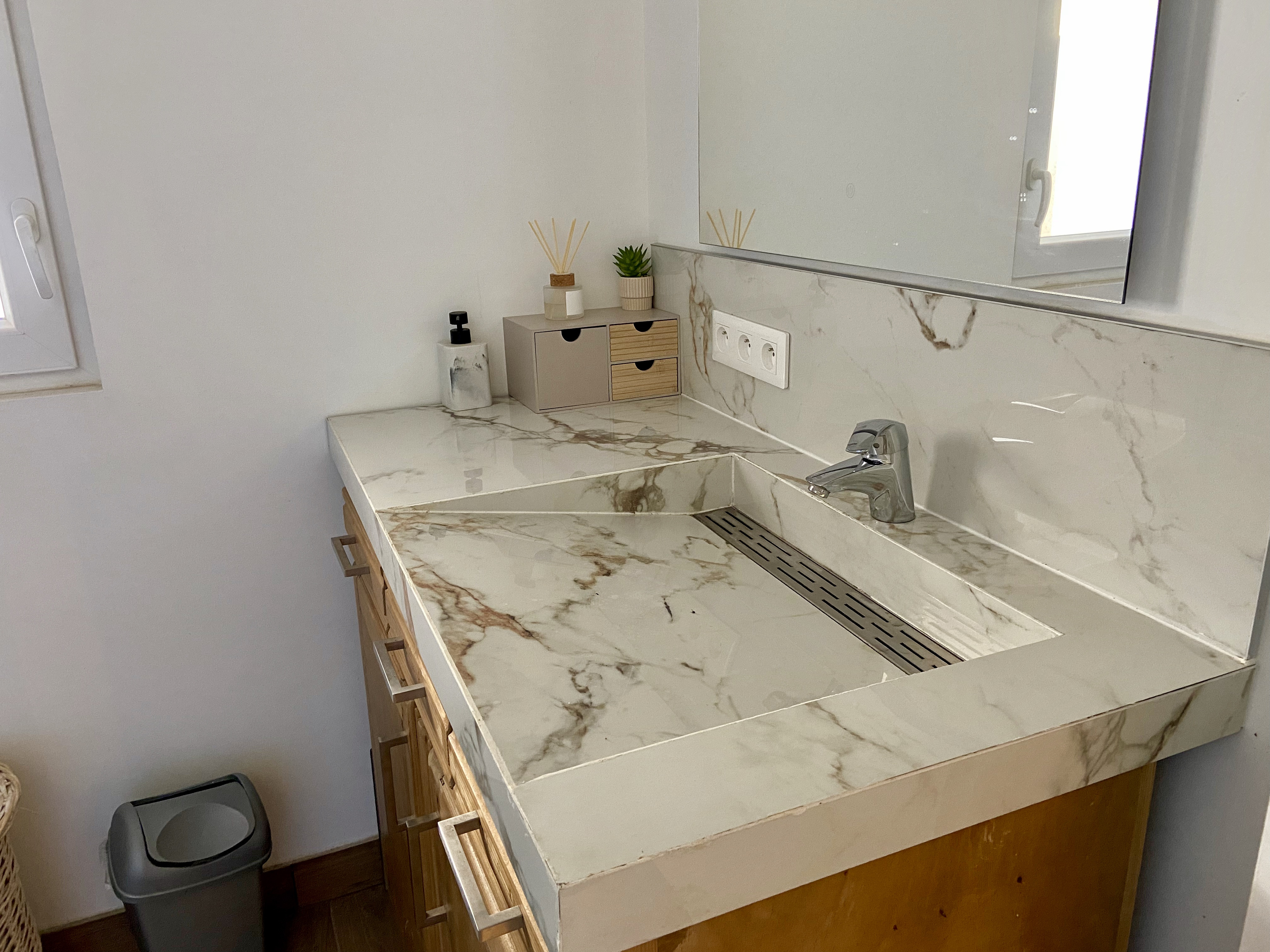 À l'étage, vous trouverez une chambre de 14 m² avec placard/dressing intégré, une salle de douche moderne, des toilettes séparées et une superbe chambre principale de 25 m² avec dressing et vue panoramique sur la rivière.