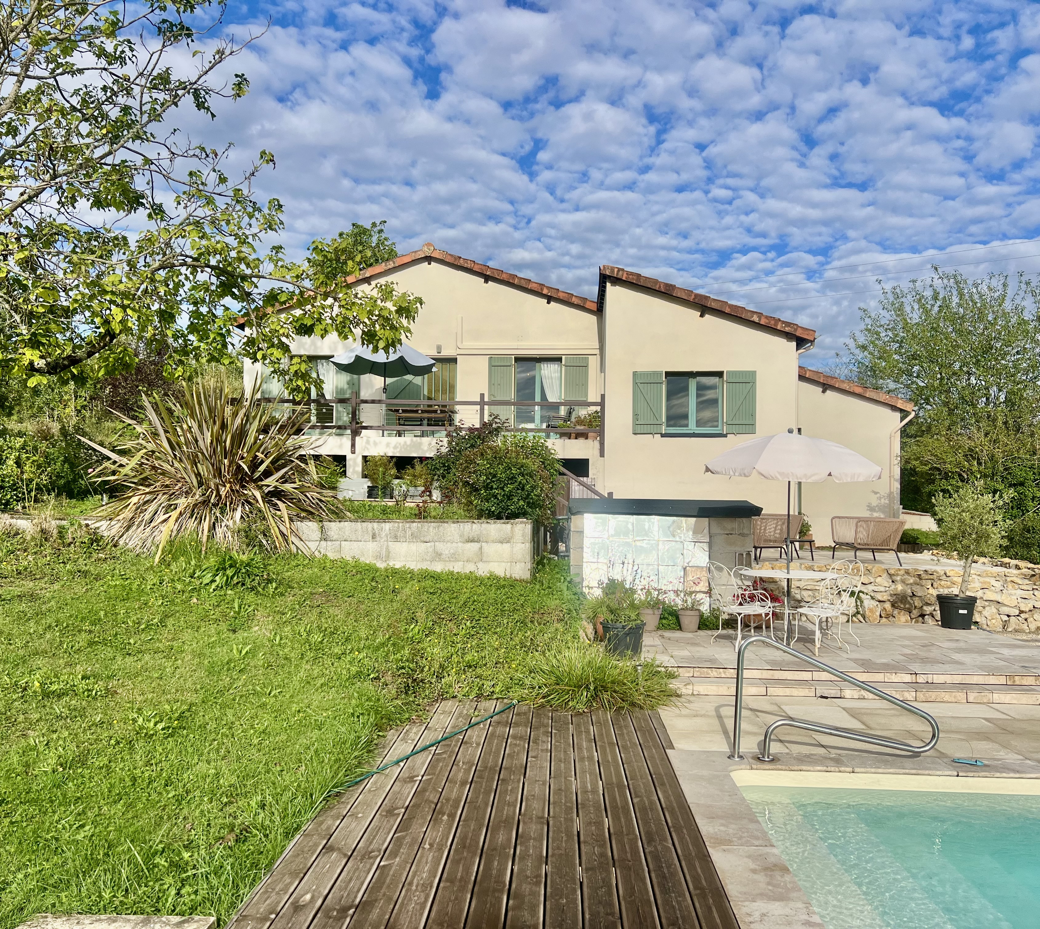 MONPAZIER: Maisond de plain-pied, piscine et jardin avec vue